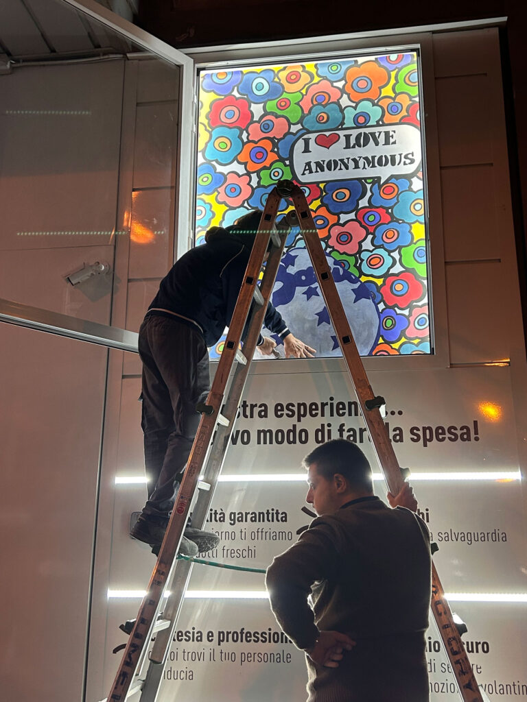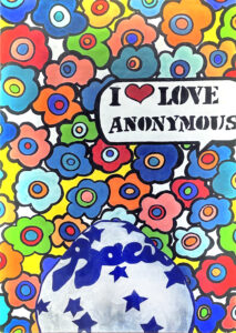 The Market is present “I Love Anonymous” acrylic on paper 150 cm x 110 cm (2023)